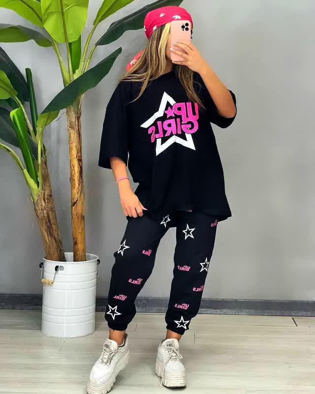 ست بلوز و شلوار طرح ستاره ای تک رنگ